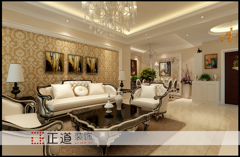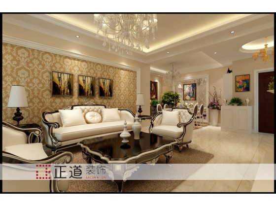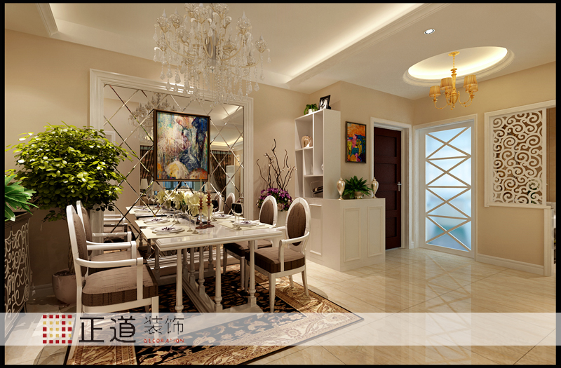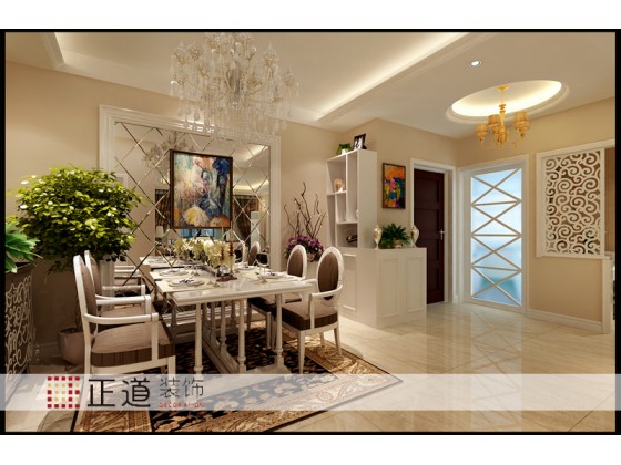 案例簡(jiǎn)介:本案在風(fēng)格定位上以舒適典雅為基調(diào),在空間里融入淡淡的貴族氣息,不張揚(yáng)卻又能體現(xiàn)不俗的品味。客廳、餐廳墻面的線框造型涂白色混油,既能體現(xiàn)歐式風(fēng)格所需要的細(xì)微層次變化,又能低調(diào)的融入到整體氛圍之中。而層次分明的線條疊級(jí)造型豐富了天花的各個(gè)角落,在天花與墻面間起到了很好的過渡和銜接的作用。